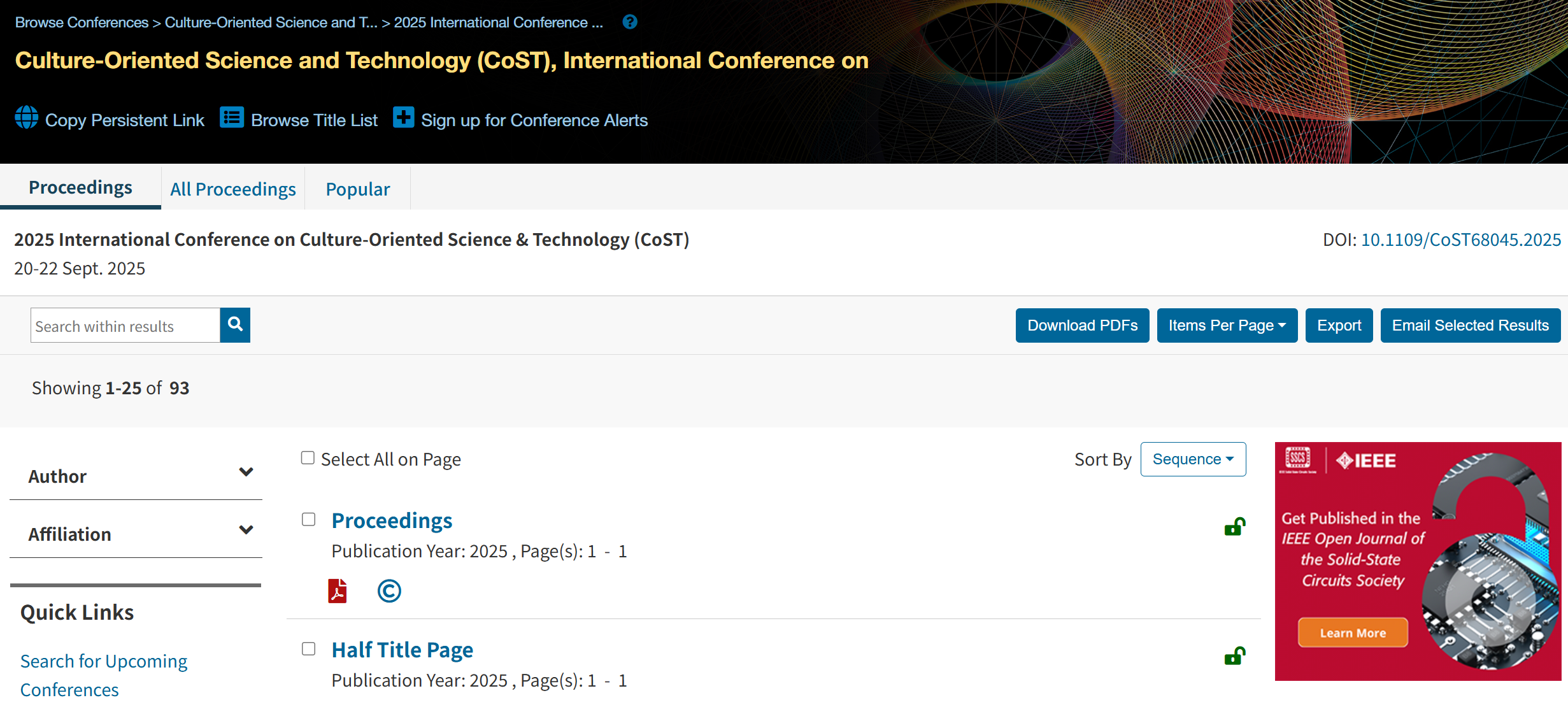 The CoST 2025 Proceedings and all papers have been included in IEEE Xplore and indexed by EI Compendex.